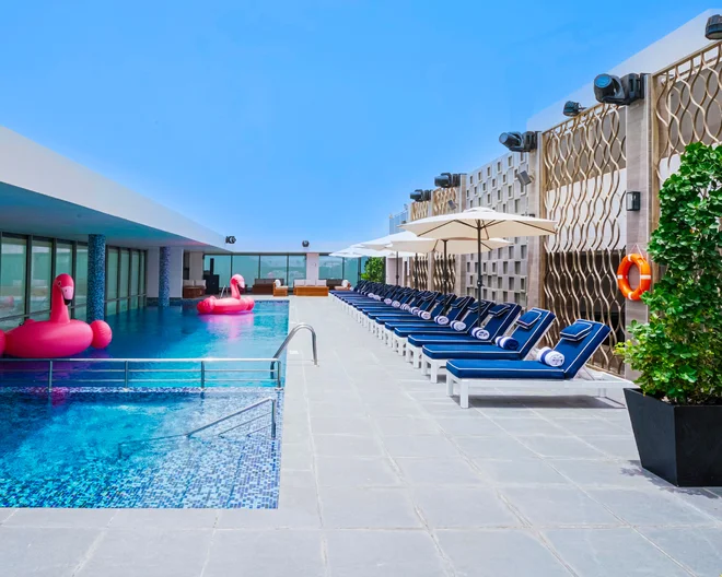Každodenní koupání si budete užívat ve stylovém venkovním bazénu na střeše hotelu. Vedle něj najdete lehátka se slunečníky a k dispozici je také bazén pro děti. Samozřejmě nebudete ochuzeni ani o osvěžení v moři. Pláž Solymar s jemným bílým pískem je vzdálená asi 15 minut chůze a vy se sem můžete dopravit buď po vlastní ose, nebo se svézt bezplatným transferem z hotelu. Slunečníky i lehátka jsou zdarma a pokud si na recepci hotelu vyzvednete voucher, můžete si užít i all inclusive přímo na pláži – včetně drinků a občerstvení.