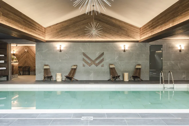 • Zážitkové sprchy, tepidárium, relaxační místnost, ochlazovací bazén, vyhřívaný vnitřní bazén, vyhřívaný vnitřní dětský bazén, vířivka, wellness bar