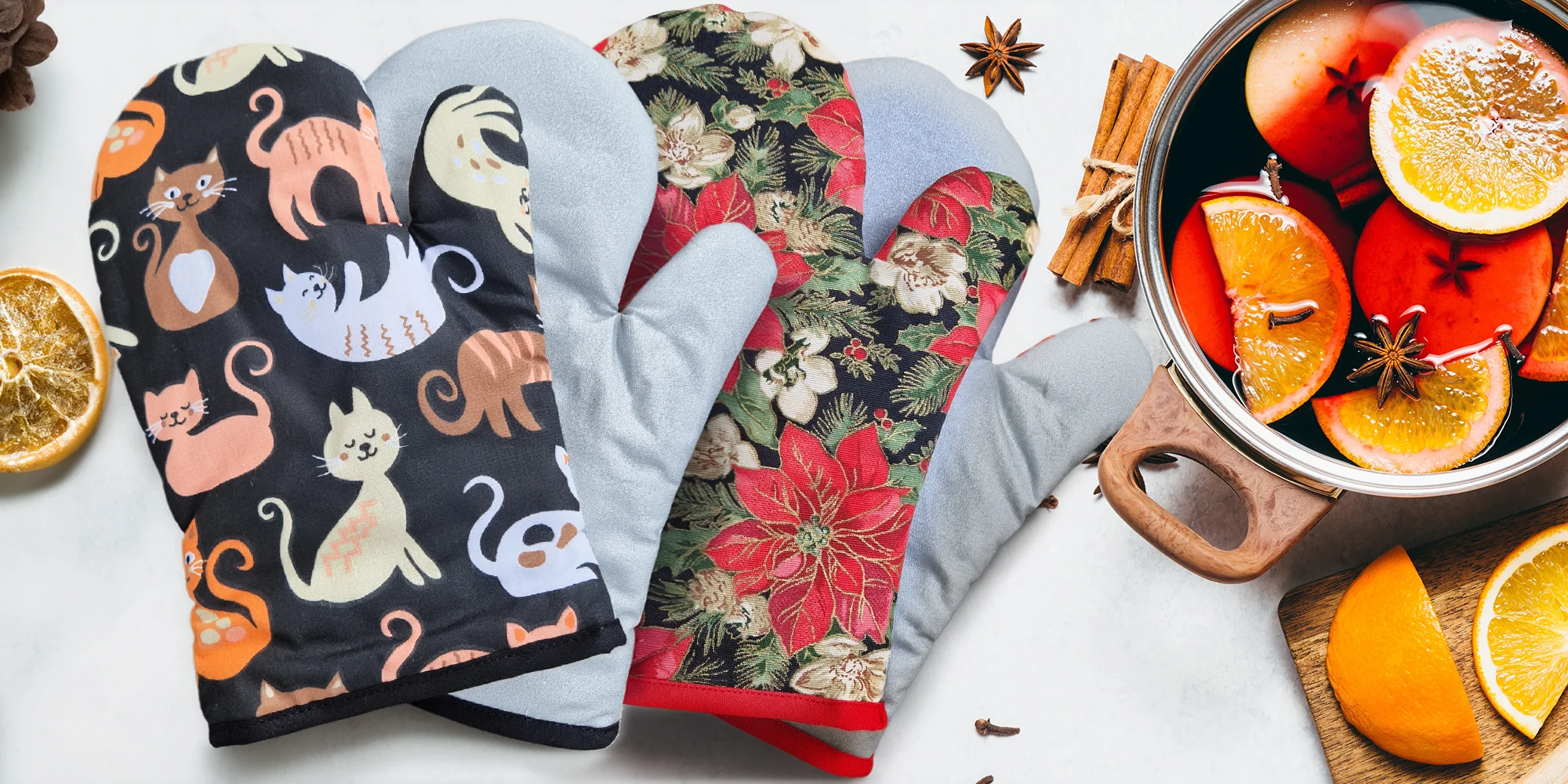 Textilní chňapky s teflonem: kočky, puntíky i krásné vánoční motivy
