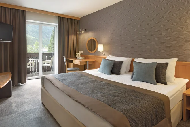 Připraven pro vás bude standardní dvoulůžkový pokoj s manželskou postelí a možností umístění dětské postýlky (za příplatek). Na pokoji najdete koupelnu se sprchovým koutem, WC a fénem. K dispozici budete mít satelitní TV, trezor a telefon, nechybí ani připojení na Wi‑Fi. Parkování je u hotelu zdarma.