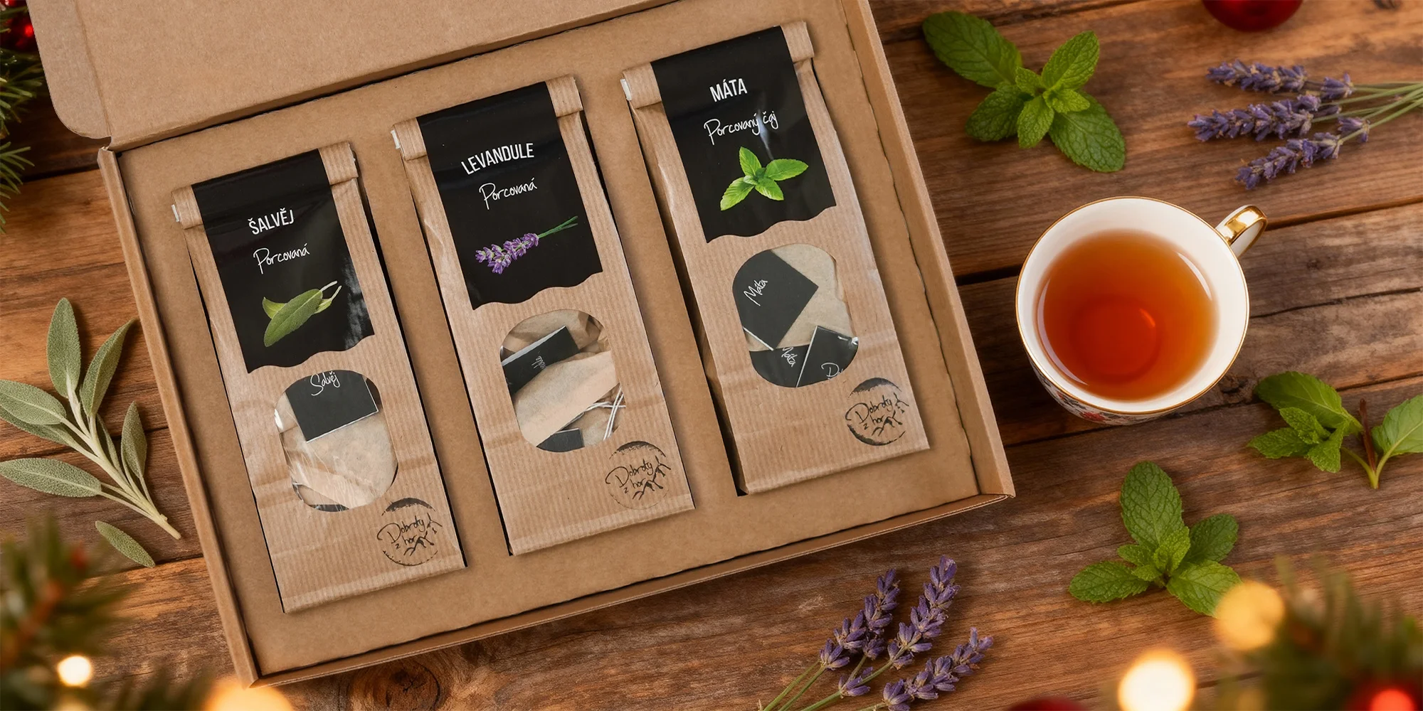 Lámete si hlavu s milým dárkem pro své blízké a další svíčku už nadělovat nechcete? Potěšte je krabičkou, která je naplněná sáčky s voňavými a ručně vyráběnými čaji od české firmy Dobroty z hor. Na výběr jsou čaje bylinkové a ovocné, jako je šalvěj, levandule, máta, černý bez, lesní směs nebo šípek se skořicí.