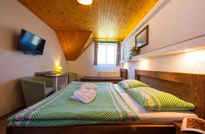 Rázovitý goralský styl se podepsal i na vybavení jednotlivých pokojů. Moderní dřevěný nábytek v kombinaci s krásným výhledem na vrcholky hor dodá celému pobytu vkusný nádech elegance. Připraveno pro vás bude ubytování ve dvoulůžkovém, třílůžkovém či čtyřlůžkovém pokoji. O pohodlí se postará manželská postel, konferenční stůl s křesly, satelitní TV i bezplatné Wi‑Fi připojení k internetu.