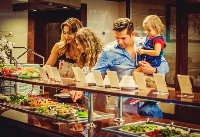 Když byla řeč o jídle, tady je důkaz, že o vás bude skvěle postaráno – na výběr jsou balíčky s polopenzí či plnou penzí. Snídaně, obědy i večeře se podávají formou bufetu a zajištěné jsou vždy i nápoje (káva, čaj, ovocné šťávy a voda). V rámci plné penze je také ve 12:00–13:30 a 16:00–17:30 otevřená restaurace Smakolandia, kde nabízejí speciální dětské pokrmy.