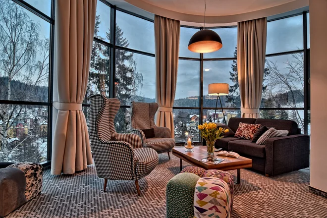 Komfort doplňuje klimatizace, TV, minibar, lednička a rychlovarná konvice, díky čemuž si můžete vychutnat ranní kávu přímo na pokoji. Příjemným bonusem je balkon, na kterém si můžete užívat výhled na okolí se šálkem čaje nebo sklenkou vína v ruce. Přímo na pokoji na vás také bude čekat místní minerální voda Kryniczanka.