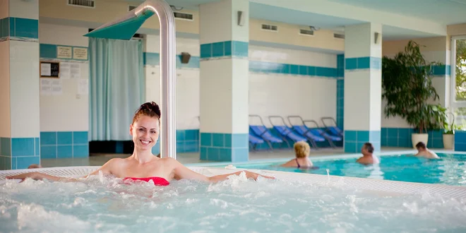 - neomezený celodenní vstup do krytého bazénu s teplotou vody 28 °C s ozónovým čištěním, protiproudem, masážními tryskami a chrličem vody