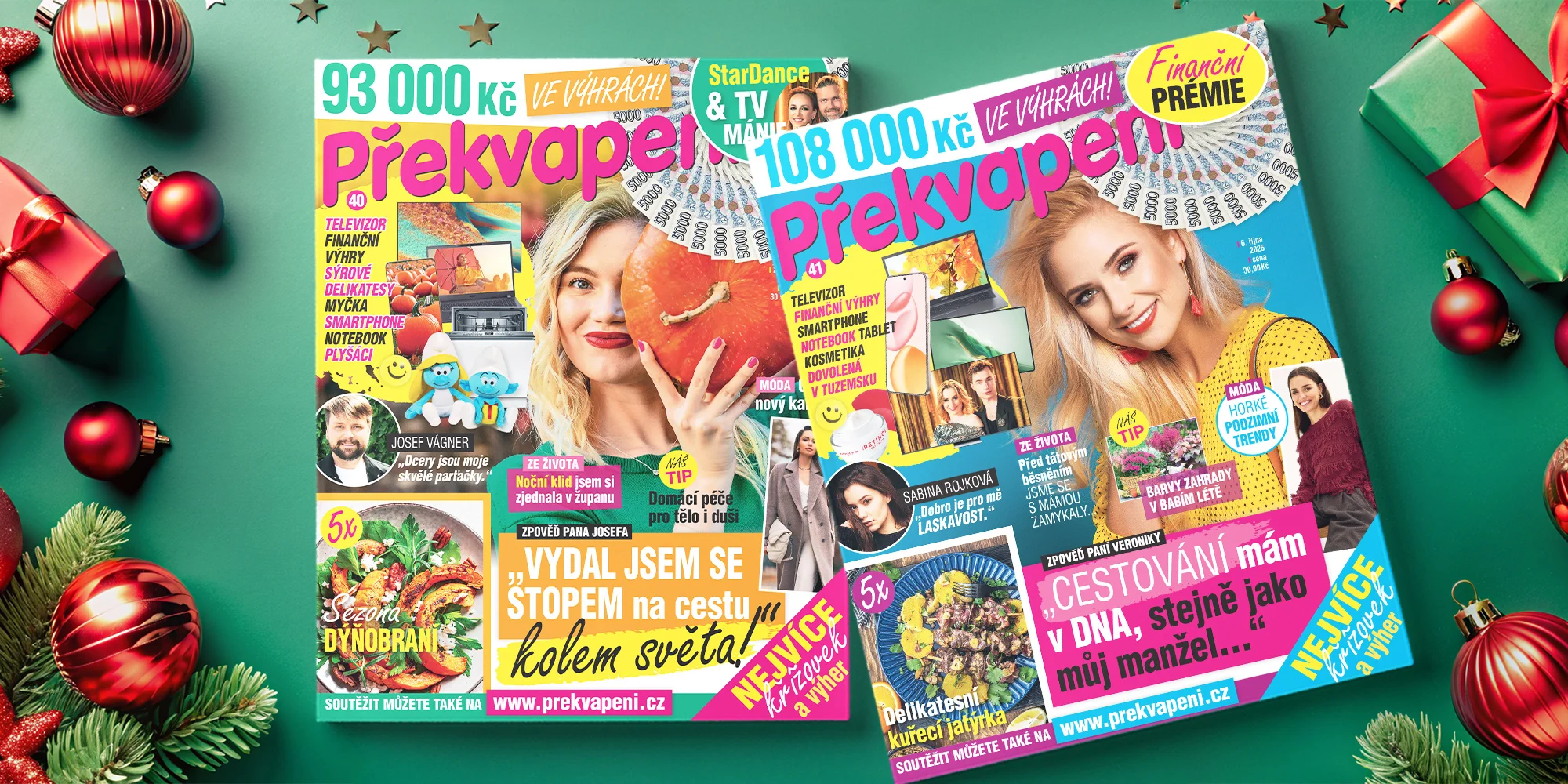 Objednejte si předplatné časopisu Překvapení a těšte se týden co týden na stránky plné poutavého čtení o mezilidských vztazích i zdraví, zajímavých čtenářských příběhů, tipů na výlety a vaření, ale také na rady z oblasti kosmetiky a módy. A aby toho nebylo málo, nechybí ani velké křížovky, osmisměrky, sudoku a další soutěže o atraktivní ceny. Nuda zkrátka nemá šanci!