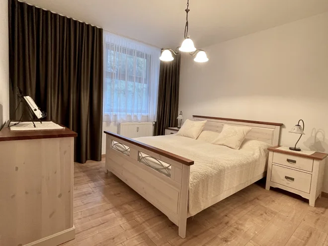 Apartmán č. 1 (pro 6 osob): 2× pokoj s manželskou postelí a jednolůžkem, obývací část s LED TV, bezplatné Wi‑Fi připojení, minibar, šatní skříň, koupelna se sociálním zařízením Apartmán č. 2 (pro 5 osob): ložnice s manželskou postelí a jednolůžkem, pokoj se třemi lůžky, LED TV, bezplatné Wi‑Fi připojení, minibar, šatník, koupelna se sociálním zařízením Apartmán č. 3 (třílůžkový apartmán s možností přistýlky): 3× ložnice (manželská postel s jednolůžkem), obývací pokoj s LED TV, rozkládací pohovkou (vhodná jako přistýlka) a balkonem, minibar, bezplatné Wi‑Fi připojení, šatní skříň |