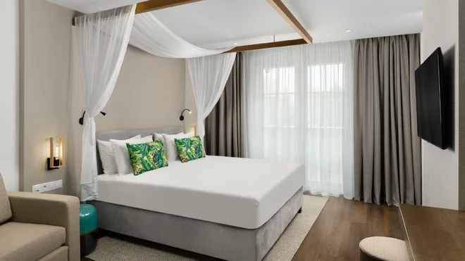 Vyberte si pokoje, které mají výhled na jezero Balaton nebo na hotelový park. Pokoje a suity resortu Mövenpick BalaLand jsou zařízeny s elegancí – k úplné harmonii napomáhají materiály, barvy a styl nábytku a dekorativních prvků.