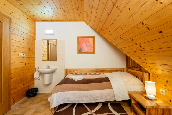 Pokud vás je více nebo si chcete užít více prostoru, zvolte apartmán č. 4, kde najdete tři manželské postele, pohodlnou sedací soupravu a stejné vybavení jako v menším apartmánu – včetně dvou balkonů. Oba apartmány jsou zařízeny s důrazem na pohodlí, čistotu a rustikální šmrnc, který perfektně ladí s atmosférou salaše.