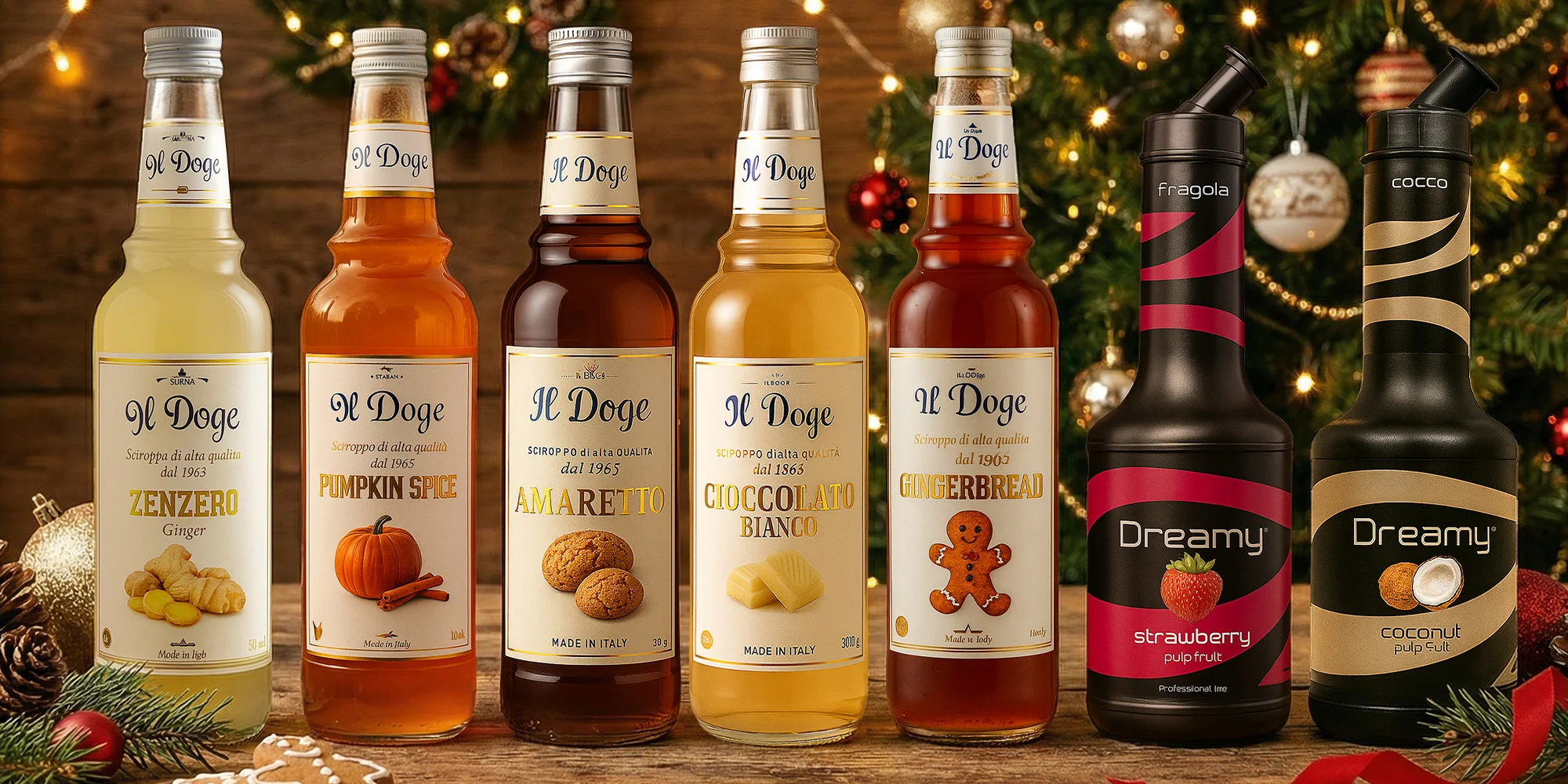 Horký nápoj, sladký dezert nebo punč s nádechem Vánoc? S přípravou těchto dobrot vám pomohou prémiové sirupy iL Doge a ovocná pyré Dreamy. Tyto kvalitní produkty se vyrábí v Itálii a pyšní se velkou oblíbeností i u profesionálních barmanů.