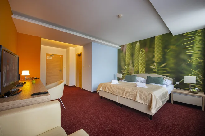 Pohodlně se zabydlíte v dvoulůžkových pokojích různých kategorií. V pokojích se nacházejí dvě pevná lůžka, která lze v některých pokojích oddělit. Soukromá koupelna disponuje vanou nebo sprchovým koutem. Vybrané pokoje mají balkon s výhledem na Tatry nebo do údolí. Nebude vám chybět ani Wi‑Fi připojení či televize. V pokojích typu Superior na vás čeká také set na přípravu kávy a čaje.
