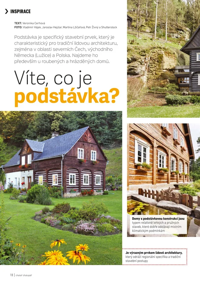 Časopis přináší formou návštěv ukázky dokončených realizací, inspiraci pro tvorbu drobných staveb a vybavení interiéru. Samostatnou rubrikou je okrasná a užitková zahrada, její zakládání a údržba. Mimo inspirativních námětů věnuje pozornost také praktickým návodům, technologiím, materiálům a nářadí. A nezapomíná ani na volný čas, hobby a sportovní aktivity. Tak pěkné čtení a chataření!