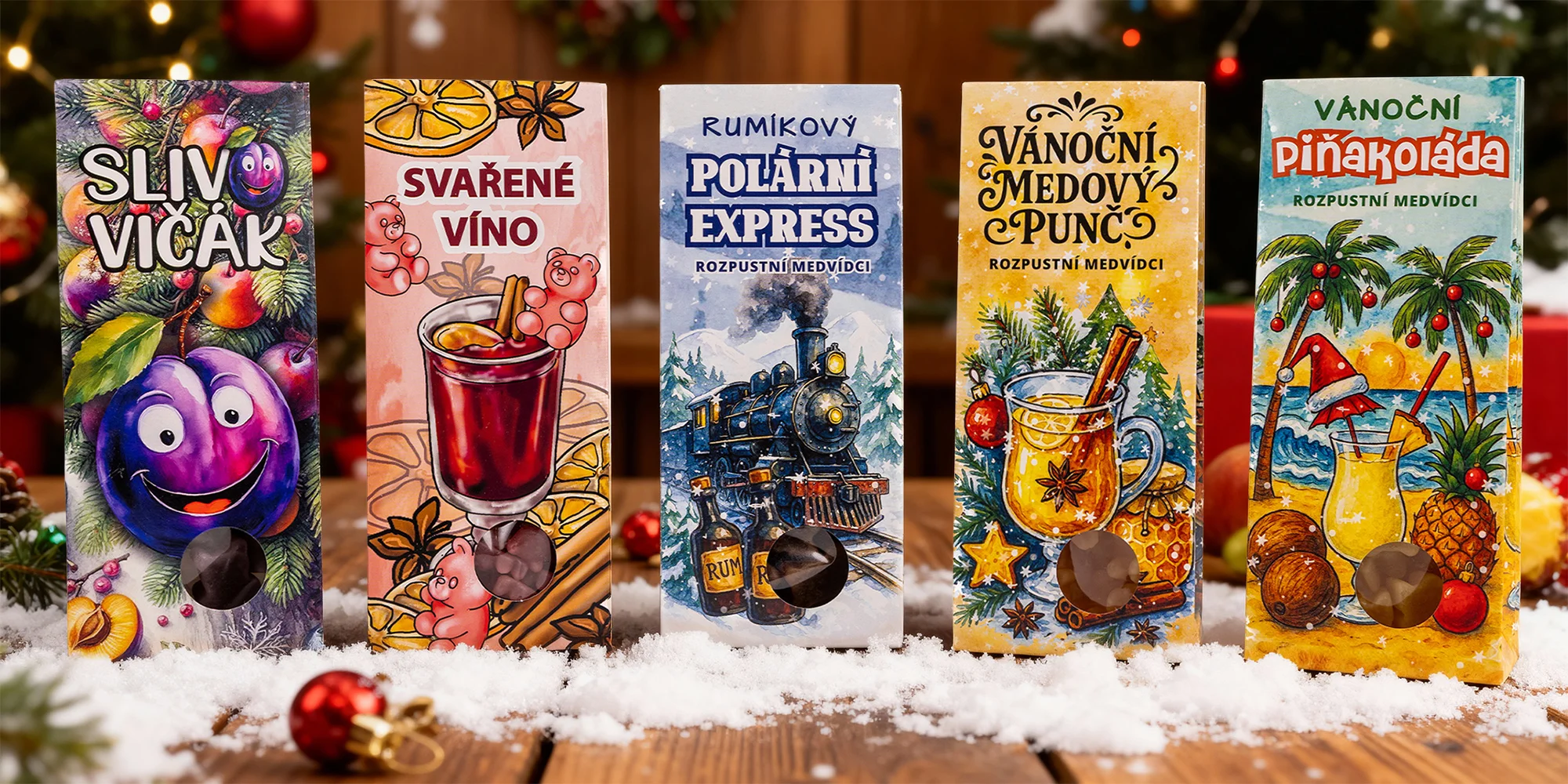 V nabídce jsou jednotlivá balení nebo vánoční balíčky s 5 až 10 příchutěmi. V nich najdete medvídky ovocné, např. pomeranč se skořicí a malina s vanilkou, ale také svařákové, slivovicové, piñakoládové, mojitové, medové, rumové a další originální kousky. Tak pojďte degustovat nebo tímhle balíčkem udělejte radost svým blízkým. Určitě vás na šálek voňavého čaje také pozvou!