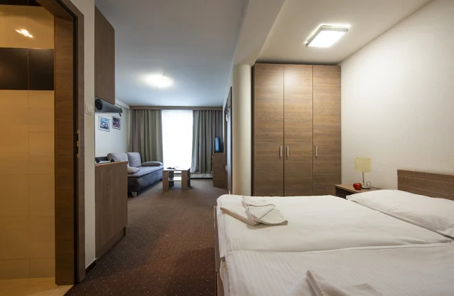 Pro hosty, kteří cestují ve dvojici, je k dispozici dvoulůžkový pokoj Standard EKO, který poskytuje stejný komfort. Pokud preferujete více prostoru a samostatnost, dvoulůžkové apartmá v přízemí hotelu, vhodné až pro čtyři hosty, je ideální volbou. Toto apartmá je bezbariérové a vybavené kuchyňským koutem, přičemž koupelna je přizpůsobena pro imobilní hosty.