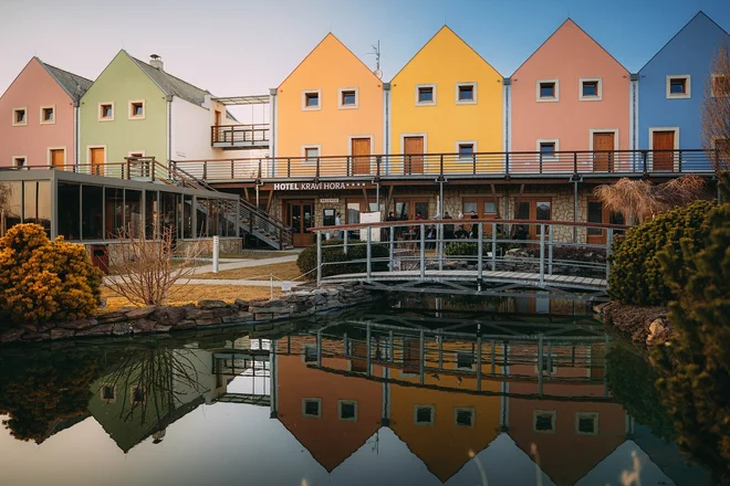 Hotel stojí v kraji vinic a sousedí s 280 vinnými sklepy. Tvoří jej 6 pastelově omítnutých domečků a pyšní se i svým vlastním rybníkem.