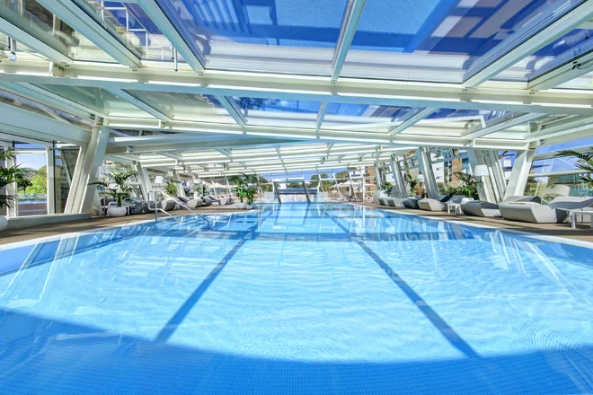 Každý den od 10:00 do 20:00 máte neomezený vstup do wellness centra. Zaplavete a odpočinete si ve vnitřním vyhřívaném bazénu s hydromasážními zónami a vodou o teplotě 32 °C. Luxusní protažení i relax slibuje velký venkovní bazén o délce 70 m s příjemně teplou vodou (28–30 °C). K dispozici je také relaxační zóna s koženými lehátky. V ceně máte také župan, ručníky a pantofle.
