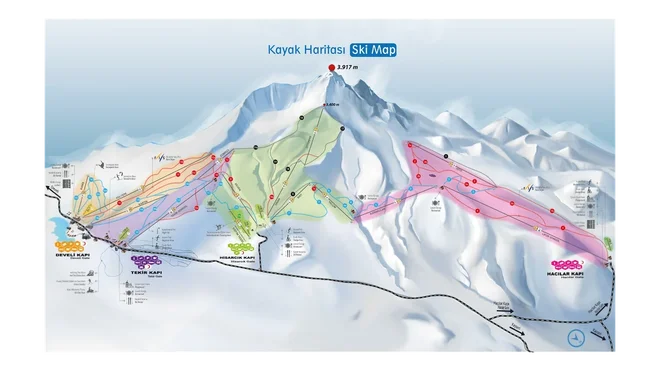 Hotel disponuje skvělou lokací – pouhých 100 metrů od nejbližšího lyžařského střediska Develi a 500 metrů od střediska Tekir. Dominuje jim nejmodernější turecký lyžařský areál, totiž Erciyes Ski Resort, který zahrnuje 102 tratí, z toho 55 kilometrů upravovaných. Najdete tu 2 kabinkové lanovky, 11 sedačkových lanovek a 1 vlek, samozřejmostí je půjčovna lyžařského vybavení.