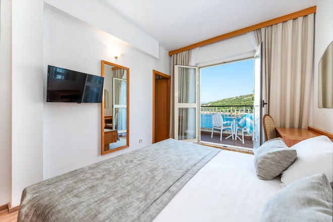 Připraven pro vás bude standardní dvoulůžkový pokoj s balkonem, z nějž se vám otevře výhled na ostrovy a zátoku Lapad. Spát budete na pohodlné manželské posteli nebo oddělených lůžkách, na vyžádání lze na pokoj umístit dětskou postýlku. Samozřejmostí je soukromá koupelna a také klimatizace (v zimě topení). K dispozici budete mít bezplatné Wi‑Fi připojení, telefon satelitní TV i chytrou TV s podporou Netflixu.