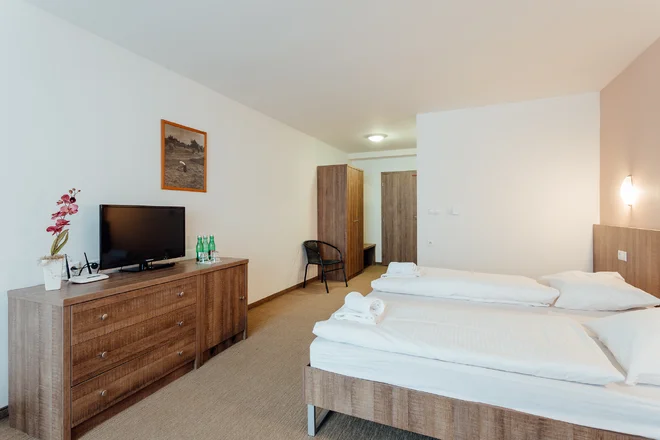 Každého návštěvníka čekají komfortně zařízené pokoje s pohodlnými postelemi, SAT TV, samostatnou koupelnou a ve vybraných pokojích jsou balkony a minibary. Také máte možnost přistýlky ve vybraných pokojích (o této možnosti je třeba se informovat na recepci) a pro nejmenší v případě požadavku i dětskou postýlku.