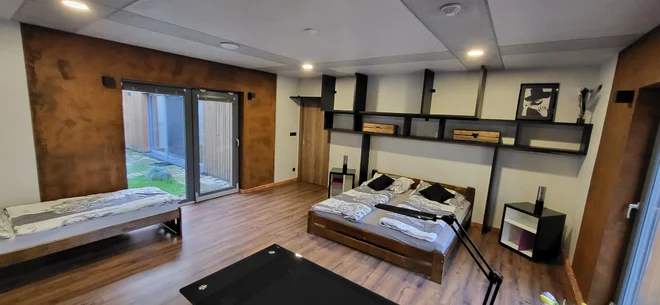 V apartmánu vám nebude chybět vůbec nic. Odpočívat budete v ložnici s pohodlnou manželskou postelí, kde je ještě další samostatné lůžko. V obývacím prostoru je velká pohovka, kterou lze využít jako přistýlku.