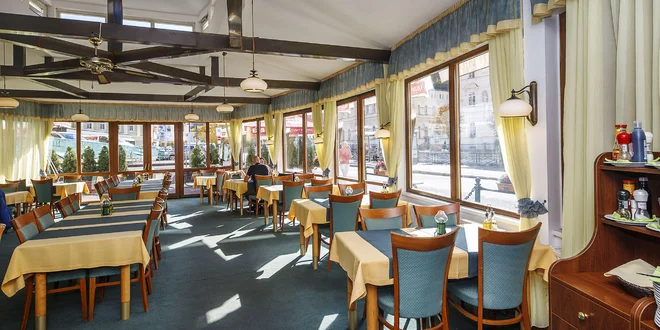 V ceně máte polopenzi – veškeré jídlo si vždy naberete z bohatého bufetu v hotelové restauraci.