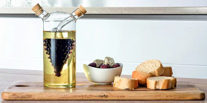Milujete saláty? Pak sáhněte po stylové karafě 2v1, která spojuje nádobu na olej (250 ml) a balzamiko (50 ml).
