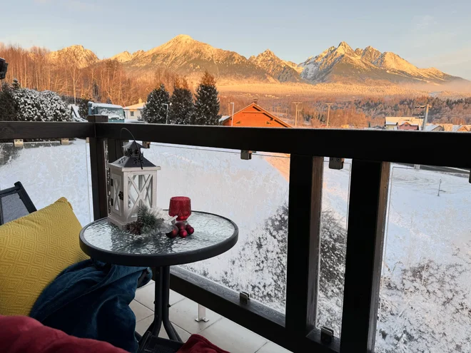 Z balkonu apartmánu si vychutnáte krásný výhled na tatranské štíty – třeba se šálkem své oblíbené kávy v ruce. K dispozici máte také bezplatné Wi‑Fi připojení a parkování přímo u budovy.