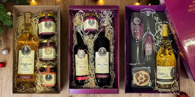 V nabídce najdete svěží Frizzante s elegantními skleničkami a voňavým perníčkem, noblesní Modrý Portugal s višňovým džemem a sirupem, letně laděný Klaret s meruňkovým i višňovým džemem a medem, nebo lahodné polosladké Agni s vinnou sklenkou a sommeliérským otvírákem. Každý balíček je originál a každý potěší trochu jinak.