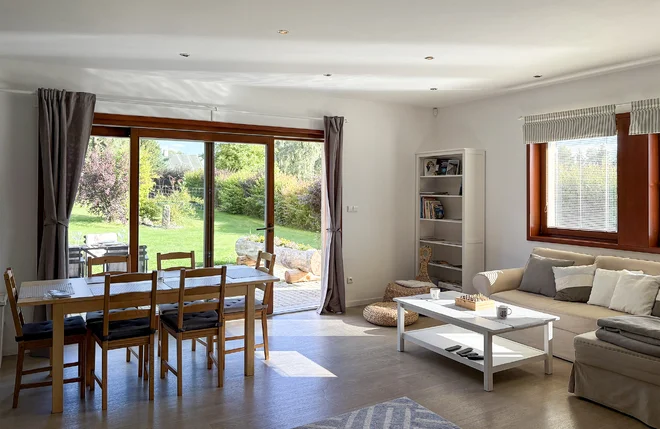 Zabydlíte se v prostorném domku, ve kterém bez problémů složí hlavu až 7 hostů. Chlubí se totiž rovnou třemi ložnicemi (s manželskou postelí i samostatnými lůžky) a obývacím pokojem s velkou rozkládací pohovkou. V plně vybavené kuchyni najdete vše potřebné pro každodenní vaření. Samozřejmostí je vlastní koupelna s vanou, televize a bezplatné připojení na Wi‑Fi.