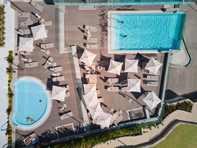 Hotelové relaxační centrum Oleum Wellness & SPA je doslova ráj pro duši i tělo. Čeká vás krytý i venkovní bazén s výhledem na moře, nechybí ani dětský bazének a vířivka. Wellness zóna je vám přístupná každý den od 8:00 do 22:00. Kromě wellness si můžete užít také špičkově vybavené fitness.