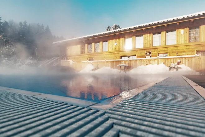 Dobré vědět: Kromě privátního wellness lze využívat neomezeně i to veřejné. Tam je vám k dispozici venkovní vyhřívaný bazén a několik saun a vířivek.