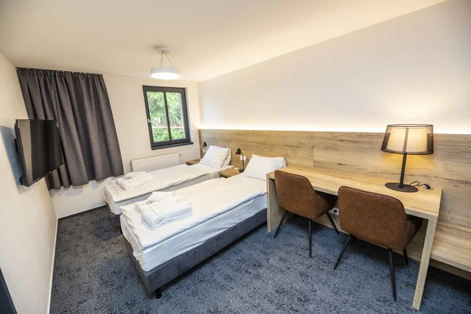 Ubytovaní budete v útulných pokojích, které mají koupelnu se sprchovým koutem nebo vanou, toaletou, fénem a základní kosmetikou. Na pokojích nechybí televize ani Wi‑Fi. Domluvit si můžete i bezbariérový pokoj. Přímo v resortu si zarelaxujete v bazénu a sauně, kam máte po dobu pobytu volný vstup. Odpočiňte si tady po výletu a třeba naplánujte, co budete dělat další den.