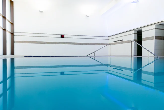 - vnitřní bazén (7,5 × 17,5m) s masážními tryskami a teplotou vody 33 °C