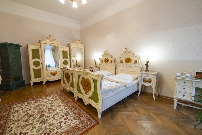 Na výběr máte komfortně zařízené dvoulůžkové pokoje Standard, Lux i apartmány, které spojují dobový design s pohodlím moderního vybavení. Více pokojů také poskytuje možnost jedné či dvou přistýlek. Samozřejmostí je vlastní koupelna se sprchovým koutem nebo vanou, lednička, televize a bezplatné připojení na Wi‑Fi.