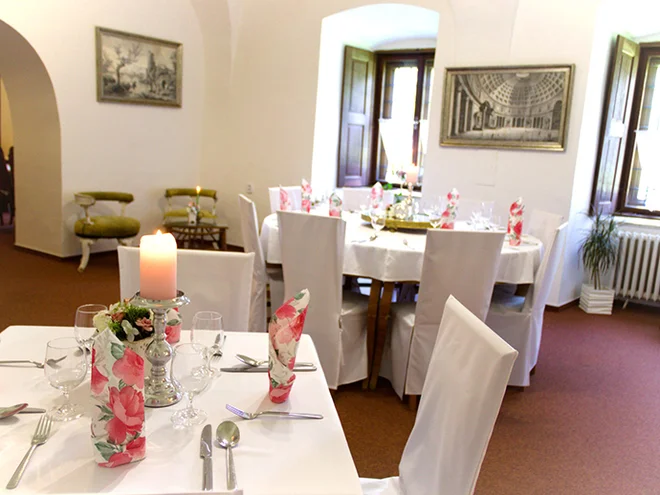 Ráno vás potěší bohaté snídaně, které jsou servírovány formou bufetu nebo připravené na míru podle obsazenosti hotelu. Pro gurmány, kteří si zvolí pobyt s polopenzí, jsou připraveny dvouchodové večeře. V rámci některých variant máte možnost vybrat si z à la carte menu, což ještě více podtrhne gastronomický zážitek. Pokud zůstanete na zámku více než dvě noci, čeká vás také voňavá káva, která jistě zpříjemní váš den.