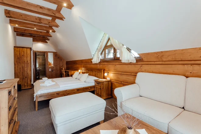 Už při vstupu vás ohromí moderní design s dřevěným nábytkem a útulná atmosféra, díky které se zde budou příjemně cítit zamilované páry i rodiny s dětmi. Všechny ubytovací jednotky mají manželskou postel, případně oddělená lůžka, gauč a televizi, na které můžete sledovat nejnovější zprávy z domova i ze světa. Samozřejmostí je bezplatné Wi‑Fi připojení k internetu. Na balkoně či terase si vypijete šálek kávy a pokocháte se krásnými výhledy na okolní přírodu.