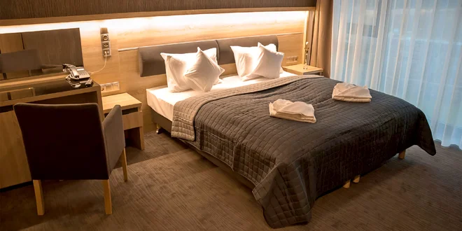 K dispozici je více variant ubytování – dvoulůžkové pokoje typu Standard nebo Superior, třílůžkový pokoj typu Classic a rodinný pokoj pro 4. V každém případě vám k dispozici bude TV, minibar, trezor i lednička. Samozřejmostí je vlastní koupelna s vanou nebo sprchou, toaletními potřebami a fénem. Také se tu připojíte na Wi‑Fi, abyste mohli přátelům posílat fotky z výletů. Většina pokojů má nádherný výhled na les.