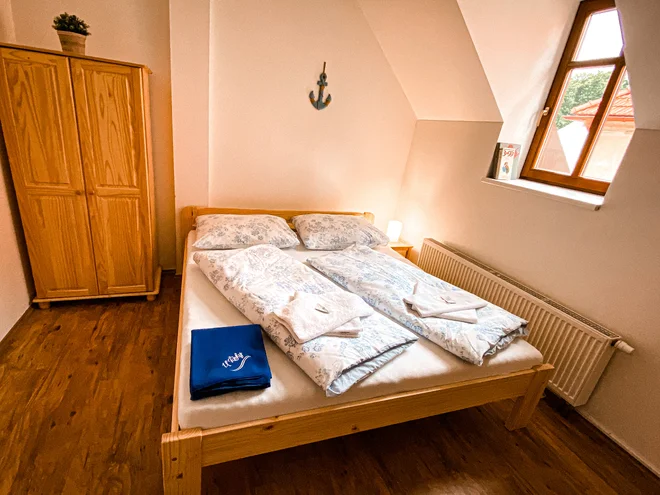 Ubytovací jednotky penzionu jsou rozdělené do nové a původní části. Na výběr tak máte dovolenkové bydlení v prakticky zařízených pokojích pro 2 až 4 hosty. V každém z nich najdete pohodlná samostatná lůžka nebo manželskou postel a přistýlky, samozřejmostí je televize a bezplatné připojení na Wi‑Fi. Vlastní koupelna je vybavena sprchovým koutem. Ochuzeni nebudete ani o výhled na hrad, případně na kostel.