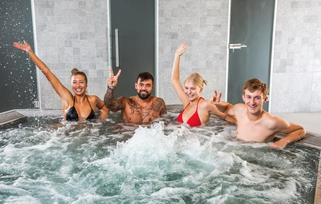 - Zahrnuje finskou saunu, parní saunu, vířivku, zážitkovou sprchu, Kneippovy lázně a relaxační místnost