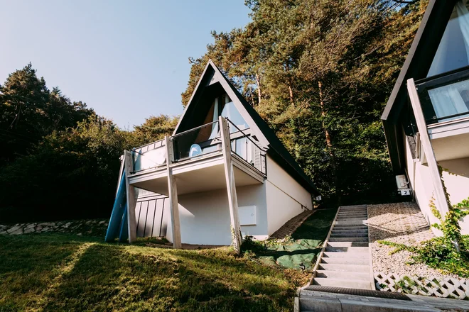 Milovníci samostatnosti ocení ubytování ve stylových domečcích. Domeček Basic a Standard (40 m²) jsou ideální pro čtyřčlenné rodiny a nabízejí dvě oddělené postele, gauč na přistýlku, kuchyňský kout a koupelnu se sprchovým koutem. Pokud hledáte více prostoru a oddělené ložnice, sáhněte po Domečku Superior (70 m²), který má až dvě samostatné ložnice a mezipatro – ideální pro větší skupiny nebo rodiny s dětmi. Každý z domečků má terasu, televizi, plně vybavený kuchyňský kout a koupelnu se sprchou.