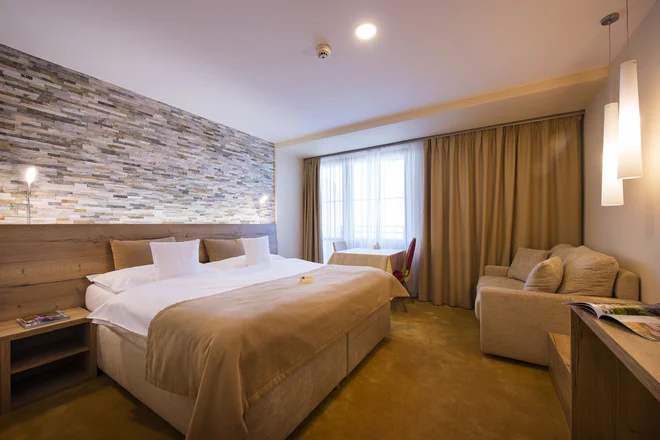Těšte se na luxusně zařízené dvojlůžkové pokoje Exclusive s výhledem do údolí nebo na hory. Královsky se vyspíte v manželské posteli a v případě potřeby je zde i rozkládací pohovka či možnost přistýlky, resp. dětské postýlky. K dispozici je samostatná koupelna se sprchovým koutem, toaletou a fénem na vlasy. Nejnovější zprávy si prohlédnete na satelitní televizi, cennosti uložíte do trezoru a případné pracovní záležitosti vyřídíte na prostorném psacím stole.