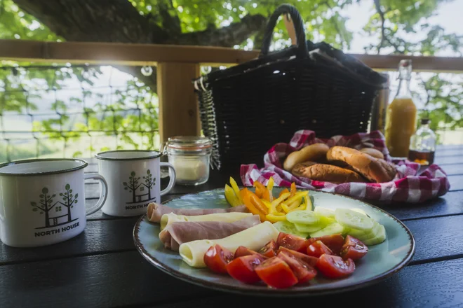 Magické ráno zažijete i díky chutnému obsahu piknikového koše, který si vytáhnete pomocí lana na terasu. Připraveny pro vás budou různé druhy jídel zejména z lokálních surovin. Sestavit si jídelníček můžete přímo při objednávce pobytu nebo až na místě podle vlastního výběru. Tuto donášku si klidně odneste do postele a pokochejte se výhledem na okolní oravskou přírodu.