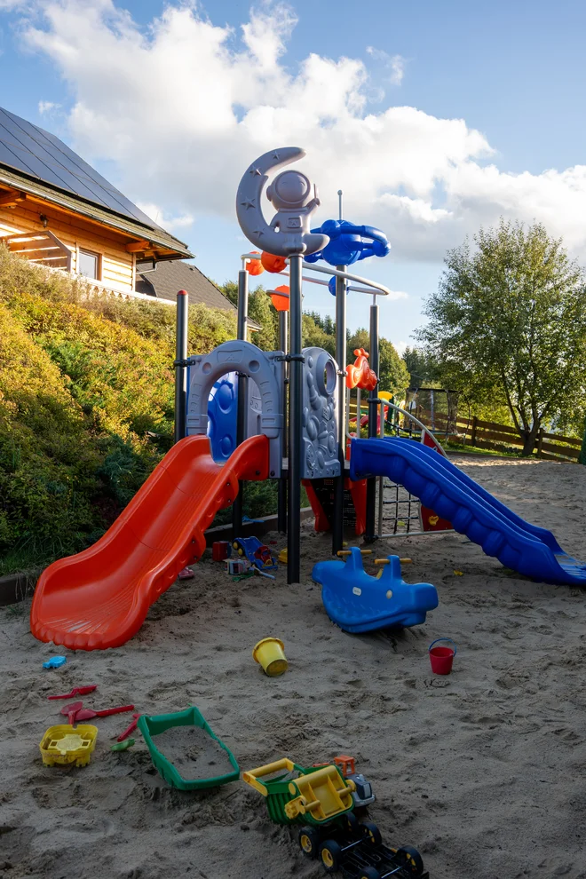 A ani rodiny s dětmi se tu nebudou nudit! Prostorná zahrada je připravena pro hry a zábavu, s řadou atrakcí, jako jsou trampolína, houpačky a dětské hřiště, kde se děti mohou bezpečně vyřádit. Večer se můžete přesunout do společných prostor – resort nabízí útulnou společenskou místnost s krbem, kde si můžete přečíst knihu, zahrát kulečník nebo šipky, případně zapnout televizi s konzolí Xbox. Pro společné večery pod širým nebem je k dispozici také ohniště a gril.
