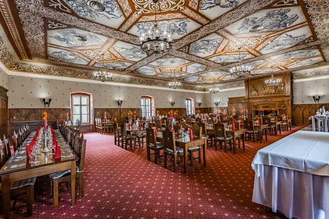 Jídlo si vychutnáte v nádherně zdobených sálech, které vám poskytnou nejen vizuální, ale i unikátní gastronomický zážitek. O snídani a večeři se starat nemusíte, vždyť ani králové nemuseli.