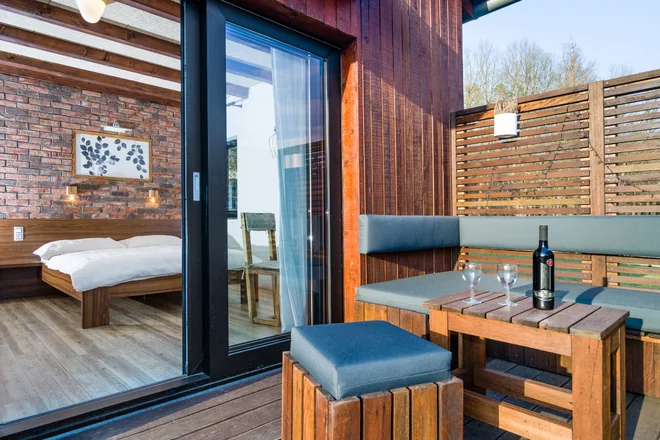 Celý areál hotelu je nově postavený, takže si tu užijete opravdový komfort. Připravený pro vás bude luxusní seník, ve kterém nechybí dvě lůžka s povlečením z českého lnu, koupelna se sprchovým koutem, WC a audiosystémem, vysokorychlostní Wi‑Fi připojení, trezor, minibar a televize. Jistě vás potěší venkovní posezení s terasou. Některé seníky mají balkon v prvním patře.