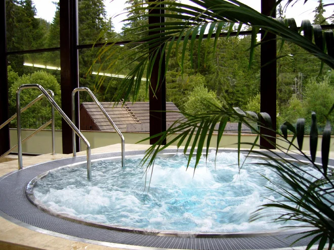 • Odpočinkový relaxační bazén (7,90 × 3,20 m), vířivá vana, odpočinková lehátka, infrasauna, eukalyptová parní sauna, klasická finská sauna