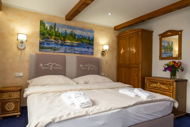 K dispozici budete mít satelitní TV, bezplatné Wi‑Fi připojení k internetu, miniledničku a set na přípravu kávy nebo čaje. Samozřejmostí je také vlastní koupelna se sprchou, toaletou, fénem na vlasy i kosmetickými potřebami. Pro ještě větší komfort si zvolte jeden z dostupných apartmánů Kamzík, které mají navíc obývací část, plně vybavený kuchyňský kout a letní terasu nebo balkon.