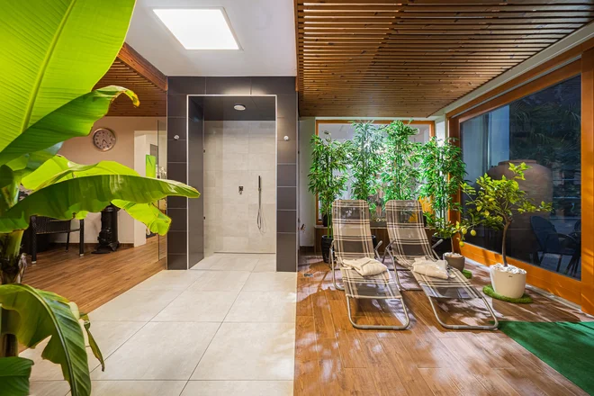 Odpočinout si můžete ve vnitřním wellness centru, které nabízí finskou a infra saunu, tropickou sprchu a relaxační zónu, kde čas plyne jaksi pomaleji. Během letních měsíců je k dispozici také venkovní bazén v zelené zahradě, který poskytuje dokonalé osvěžení. Každý pobyt zahrnuje také jeden privátní vstup do wellness na dvě hodiny, při prodloužení pobytu si jej můžete dopřát znovu. Župany jsou k dispozici na recepci.