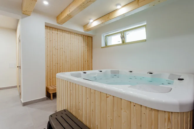 - Koupací káď s tryskami pod širým nebem: 35 € (1 hod./2 osoby), 50 € (1,5 hod./2 osoby). Možnost přidat láhev prosecca +10 €.
