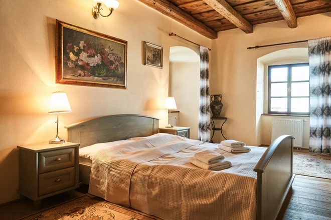 Ubytováni budete v komfortním dvoulůžkovém pokoji s TV, psacím stolem a samostatnou koupelnou, ve které se nachází sprchový kout a toaleta. Za příplatek se můžete ubytovat i v prostornějších, stylově zařízených suitech a apartmánech, ve kterých budete mít navíc k dispozici i rozkládací gauč.